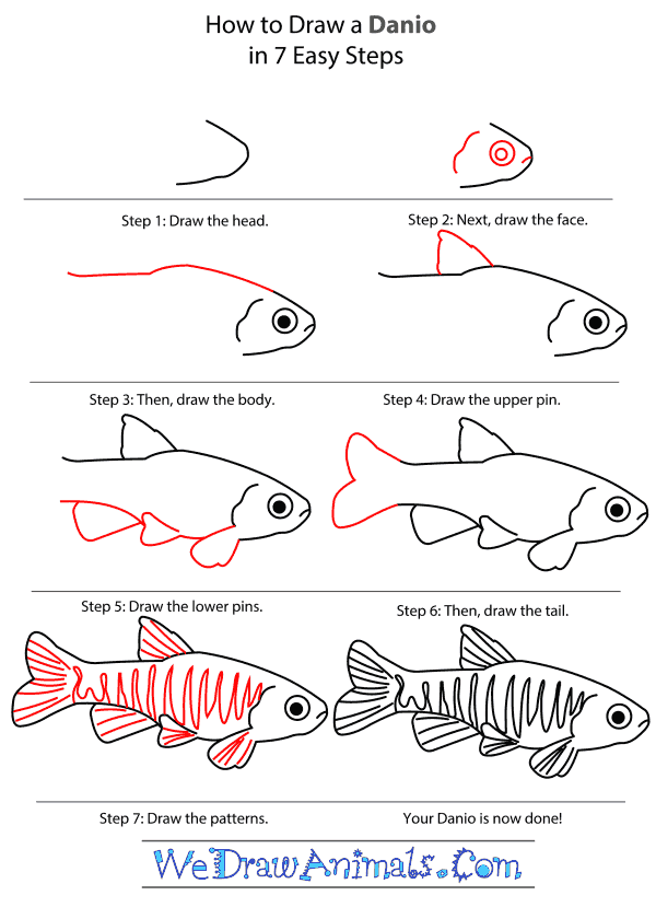 In this quick tutorial you'll learn how to draw a Danio in 7 easy steps - great for kids and novice artists.