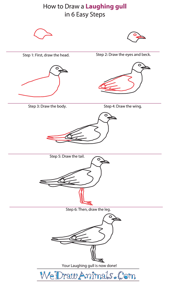 In this quick tutorial you'll learn how to draw a Laughing Gull in 6 easy steps - great for kids and novice artists.
