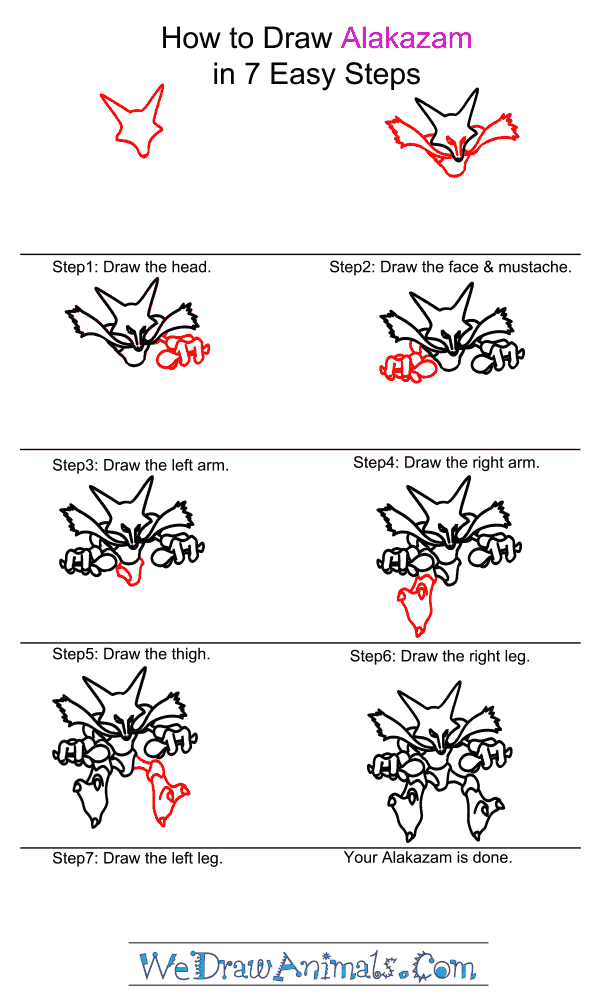 In this quick tutorial you'll learn how to draw Alakazam in 7 easy steps - great for kids and novice artists.