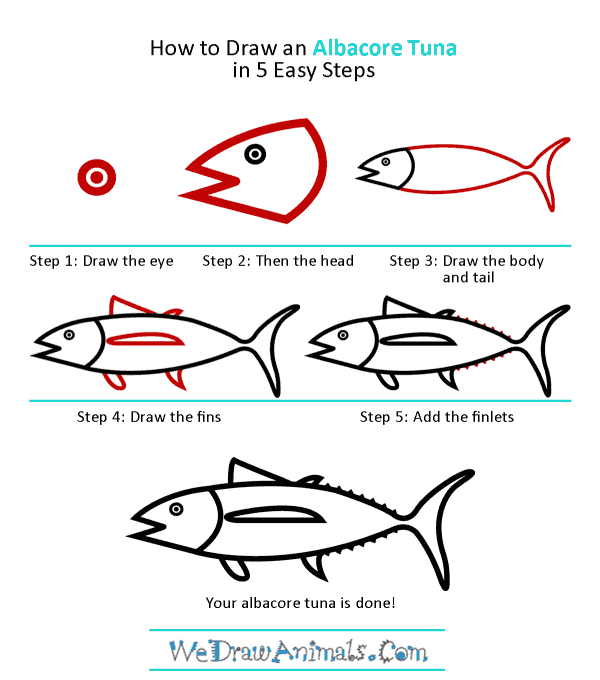 In this quick tutorial you'll learn how to draw an Albacore Tuna in 5 easy steps - great for kids and novice artists.