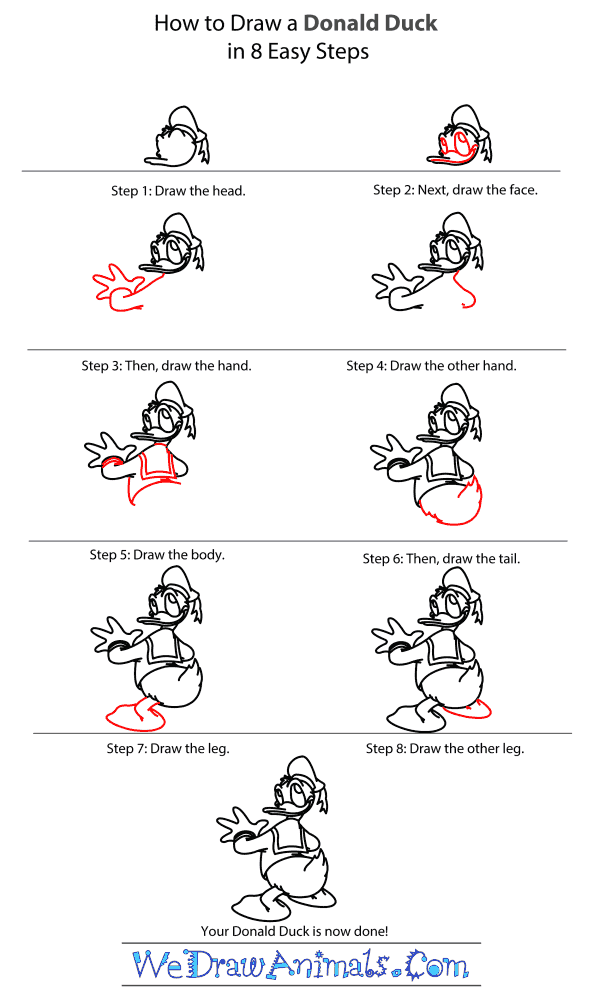 In this quick tutorial you'll learn how to draw Donald Duck in 8 easy steps - great for kids and novice artists.